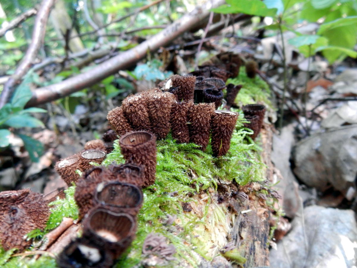 Die Pilzkörper sind dicht aneinander gewachsen.