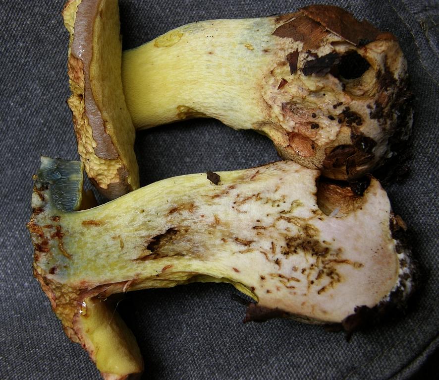 Hier mal mit etwas eigentümlicher Färbung, ausblassenden Poren und wenig rot am Stiel. Auch von dieser Art gibt es ja gelbliche Farbformen. Der Fund geht schon so ein wenig in die Richtung.