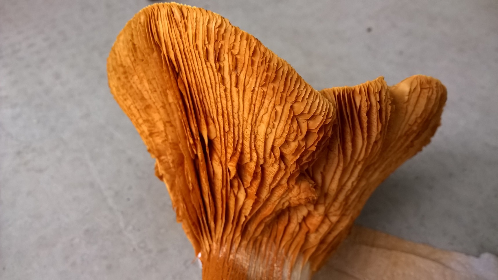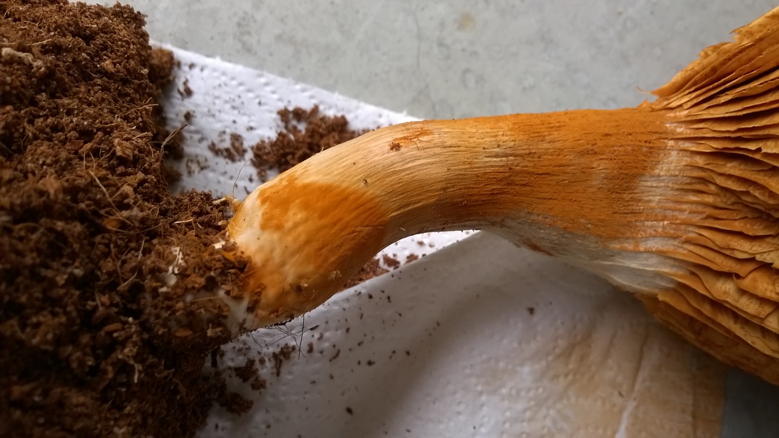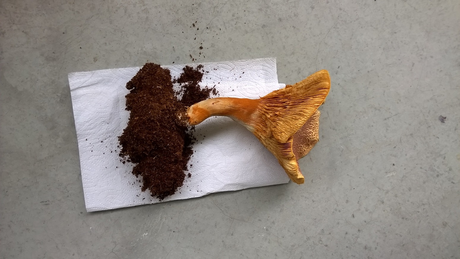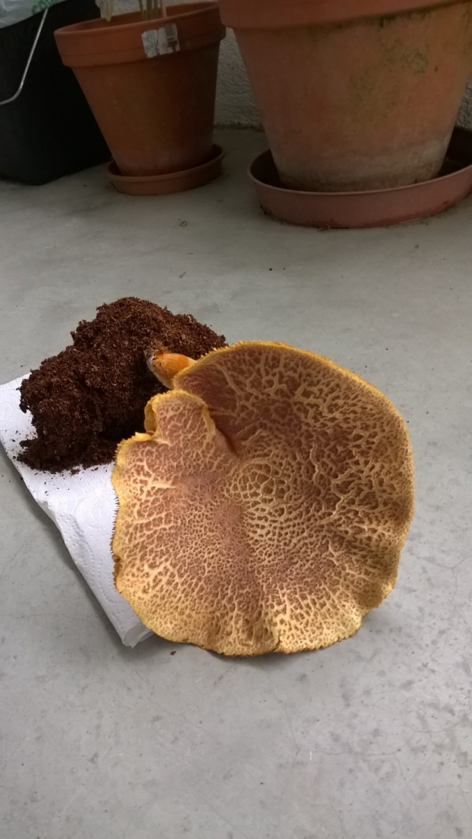 Ausserdem färbt der Pilz ab (glaube orange, bin allerdings etwas farbenblind, deshalb keine Garantie).