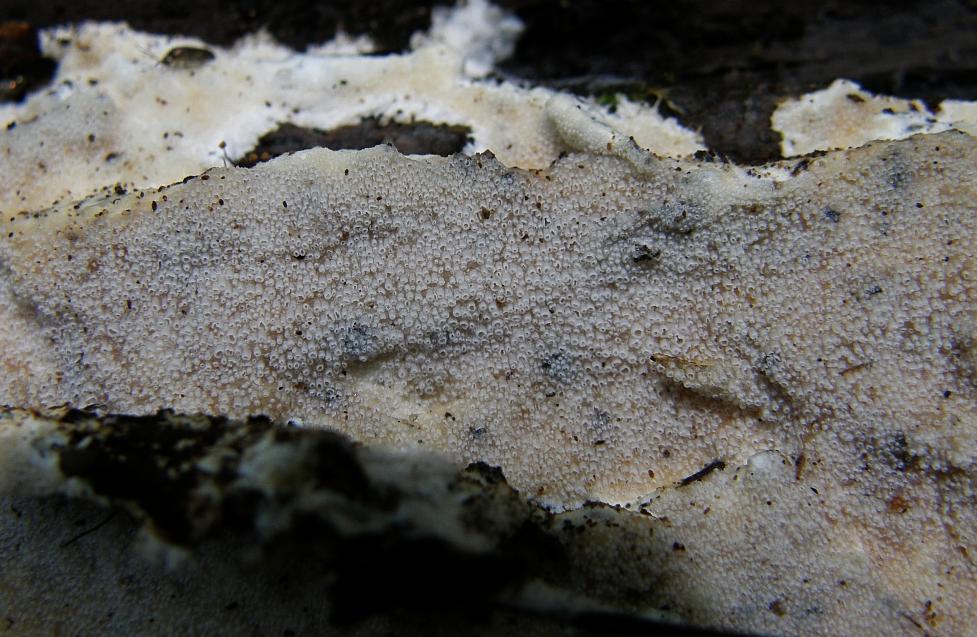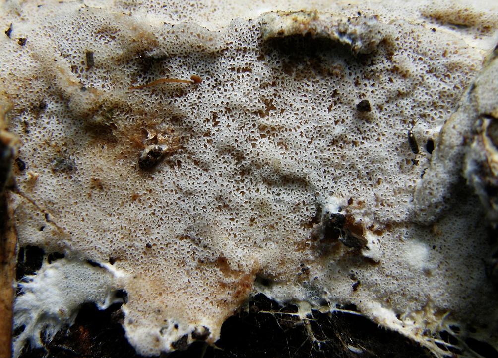 Da dürfte es eher eine Verwandschaft zu Ceriporia geben, da auch diese Arten zwischen Porlingen und Cyphelloiden Pilzen stehen. Ebenso wie ja auch die Ochsenzunge.