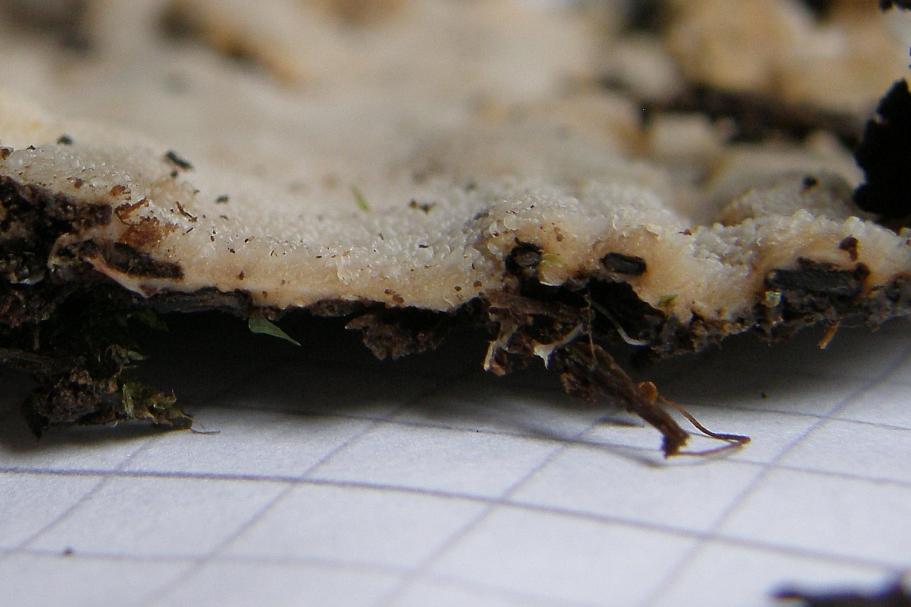 Trechispora mollusca oder eine andere Art der Gattung könnte noch am ehesten hin kommen, aber auch da kann sehe ich nirgendwo solche Hymenien.
