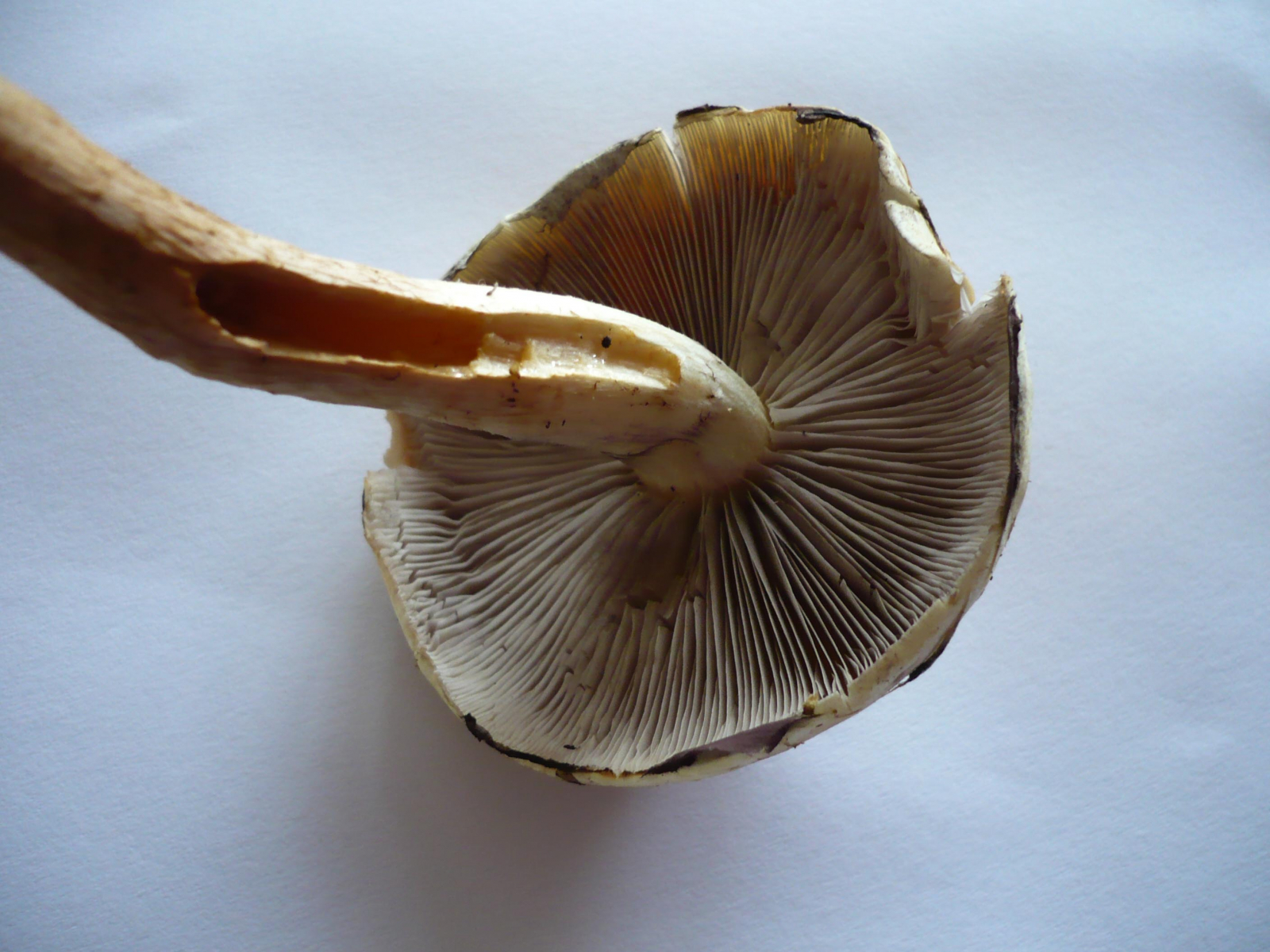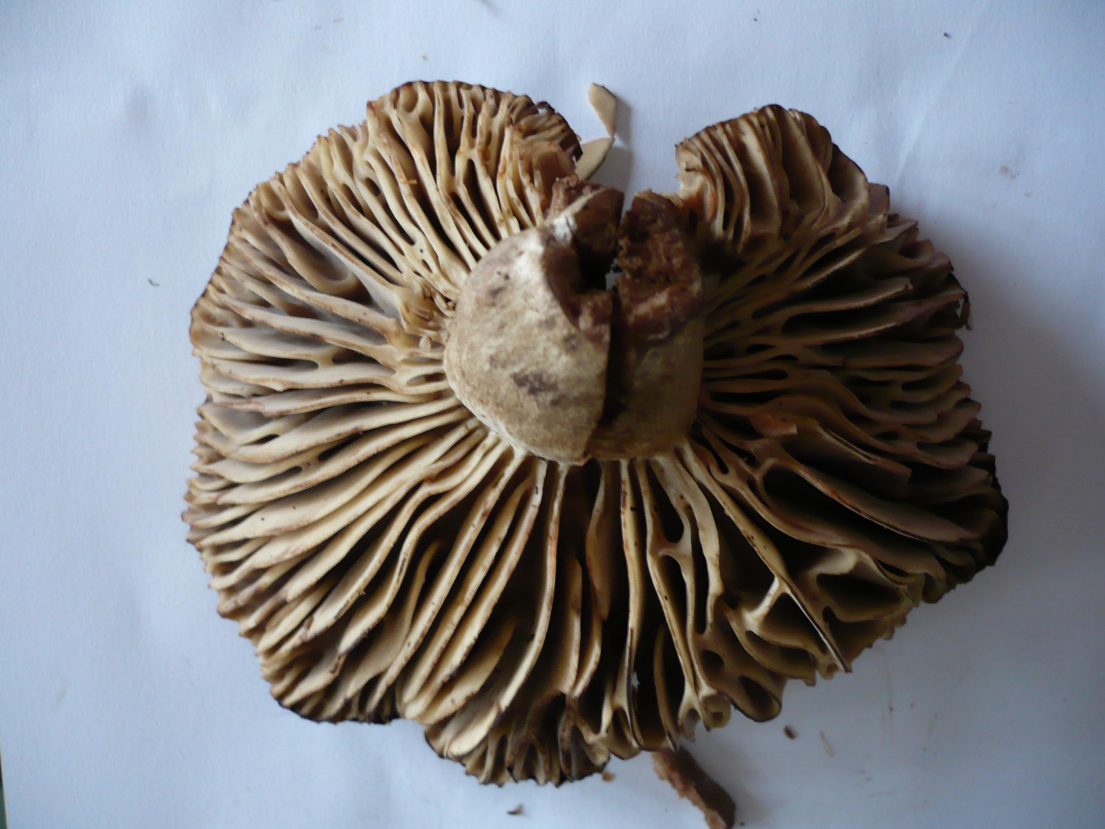 [*] Der erste Pilz hat einen Hutdurchmesser von ca. 15 cm. Er riecht sehr nach Pilz. Der Stil ist so kurz da er 1. nicht länger war und 2. ich nicht an die Knolle kam! Es standen noch 2 weitere von doesem Exemplar in der Nähe diese waren aber leider nicht mehr gut ;( Die waren am Vergammeln und ich hatte leider meinen Digi Cam nicht dabei! Die Lamellen spilltern wenn man ihn da normal stark anfässt. Er verfärbt sich überhaupt nicht!!!! Schmeckt auch nicht komisch. Ich hätte auf einen Zweifarbigen Wasserkopf getippt, bloss haut die Hutgröße nicht hin, dieser ist zu groß!!! Was denkt ihr??
