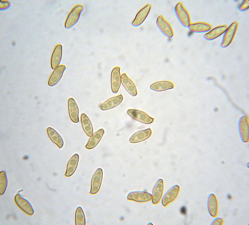 Sporen: ellipsoid spindelförmig, glatt,12-14,5 x 4,5-5 µm; MW 12,86 x 4,87 µm (10 vermessene Sporen)