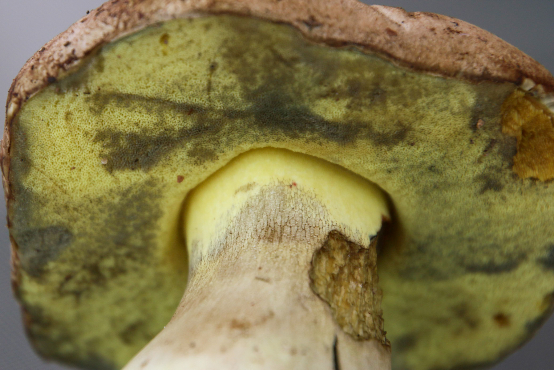 Der Gallenröhrling (Tylopilus felleus) hat niemals Gelbtöne an Röhren und / oder Poren.
