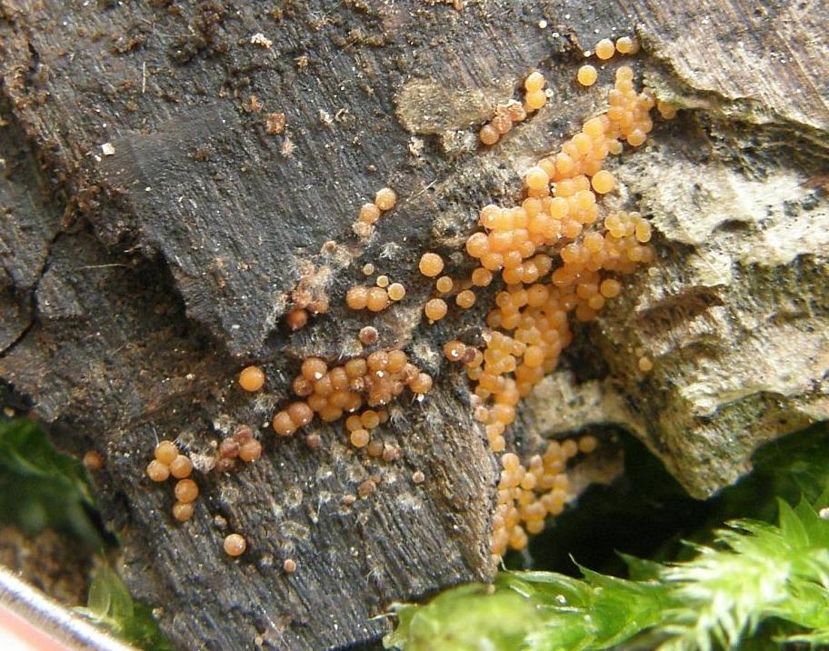 Hier mal als eine Zwergform (Hutdurchmesser knapp über 1 cm) auf winzigen Holzstückchen am Wegrand gewachsen.