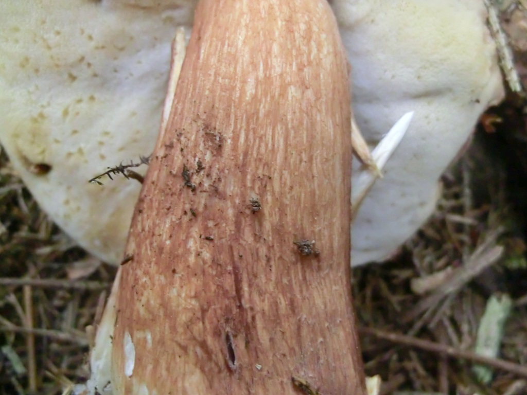 Es könnte sich durchaus auch um einen pinophilus handeln, auch die Stielfarbe die ins rötlichbraune geht, könnte für diesen sprechen. Jedoch bin ich von der Kappenfarbe weit weg, was pinophilus angeht. Diese dunklen Stellen auf der Kappe kann auch für edulis sprechen. Beide Arten sind sehr veränderlich im Erscheinungsbild. Also ja, möglich wäre der pinophilus. Ist halt ein unglücklicher alter Schlappen :)