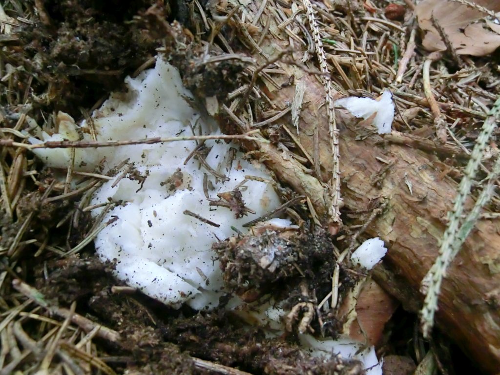 Nach 4 Jahren habe ich wieder einen Tintenfischpilz gefunden, und zwar an einem Waldweg (Mischwald). Die Böschung war gerade frisch gemäht worden.