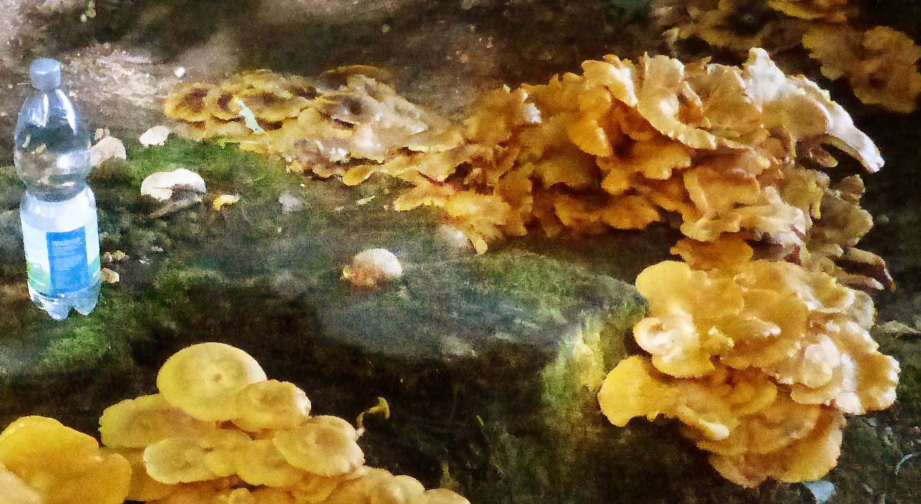 hast du noch ein Detailbild von einem einzelnen Exemplar? Zum Beispiel eines, mit dessen Hilfe man ihm unter den Rock gucken kann? Und was für ein Baumstumpf war das - Nadel oder Laub?