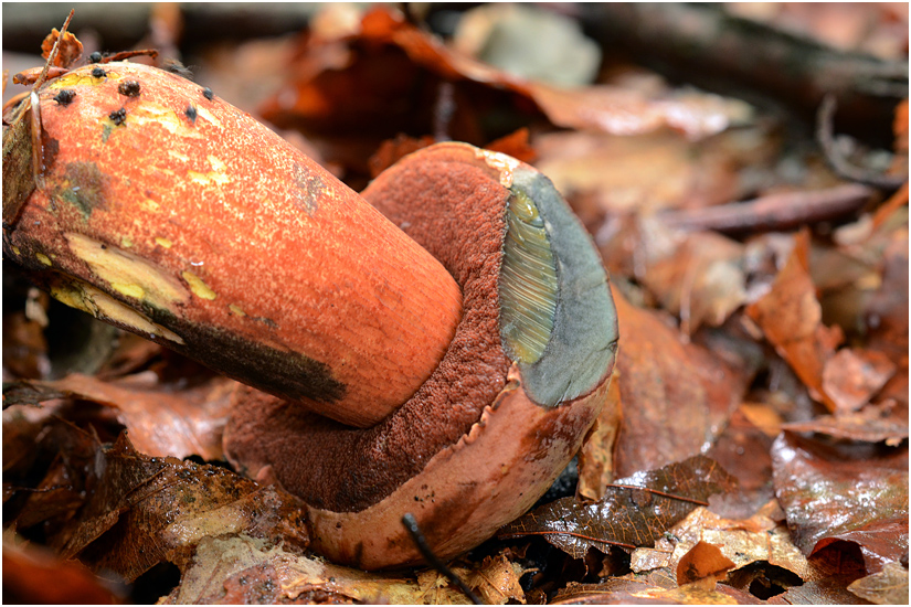 Für mich haben bisher die Merkmale geflockter Stiel, rote Röhren, starkblauend nach Anschnitt genügt, um von einem flockenstieligen Hexenröhrling auszugehen.