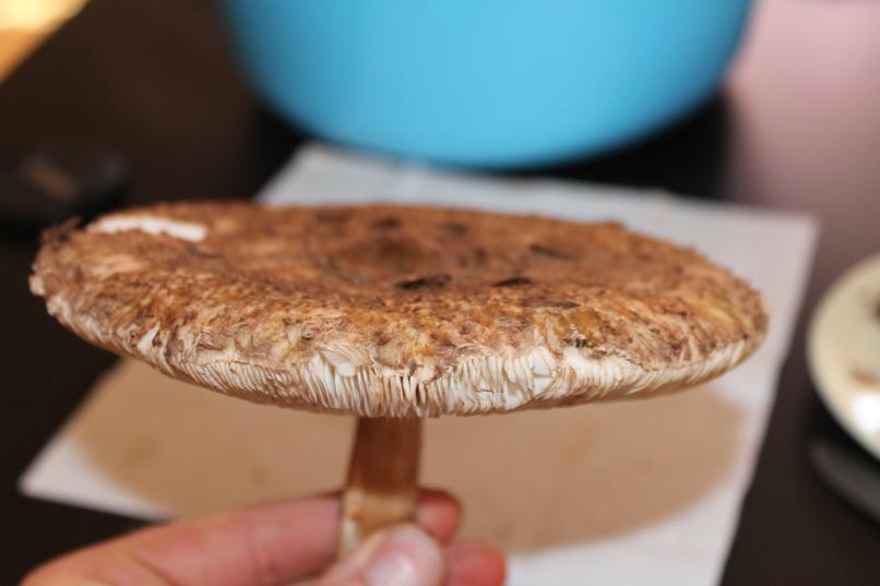 wir haben heute beim Pilze suchen im Wald einen für uns vermeintlichen Parasol mitgenommen.