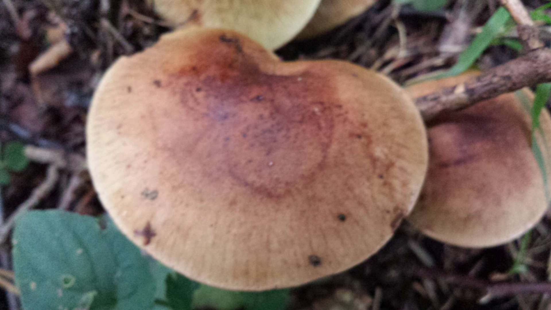 Also ich vermute einen Pilz, der weißes Sporenpulver und gelbliches Fleisch hat. Und normalerweise auch einen erkennbaren Burggraben, was hier nur bei dem keinen Exemplar zu erkennen ist.LG, Pablo.
