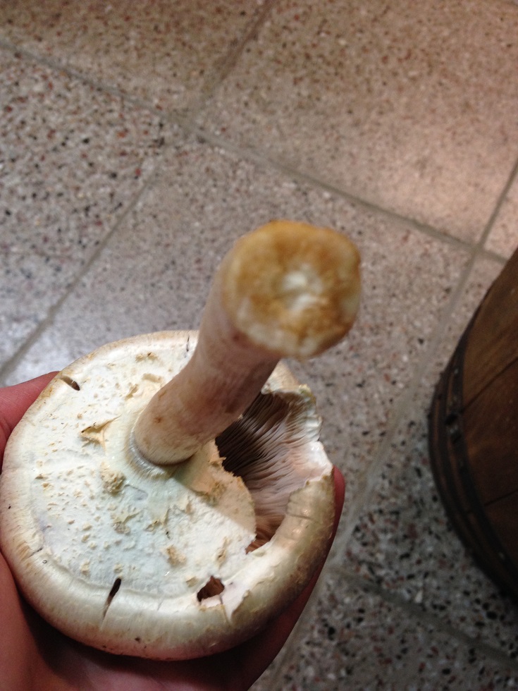 Das Problem ist: Champignons bestimmen ohne vollständige Stielbasis ist ungefähr so sinnvoll wie Schwimmen ohne Wasser.