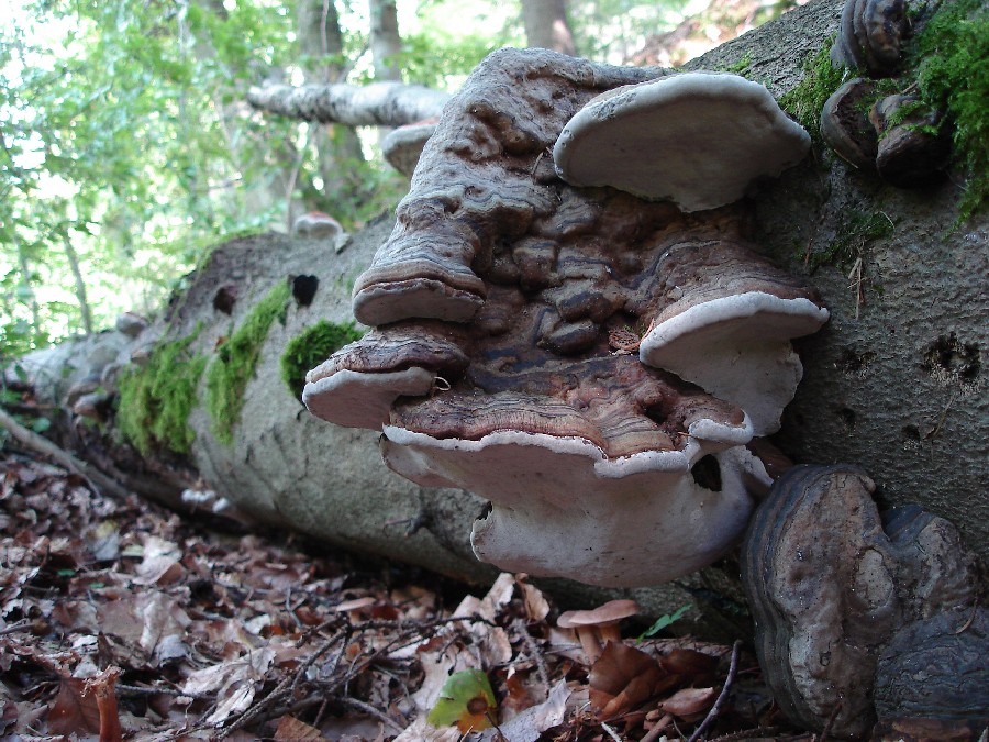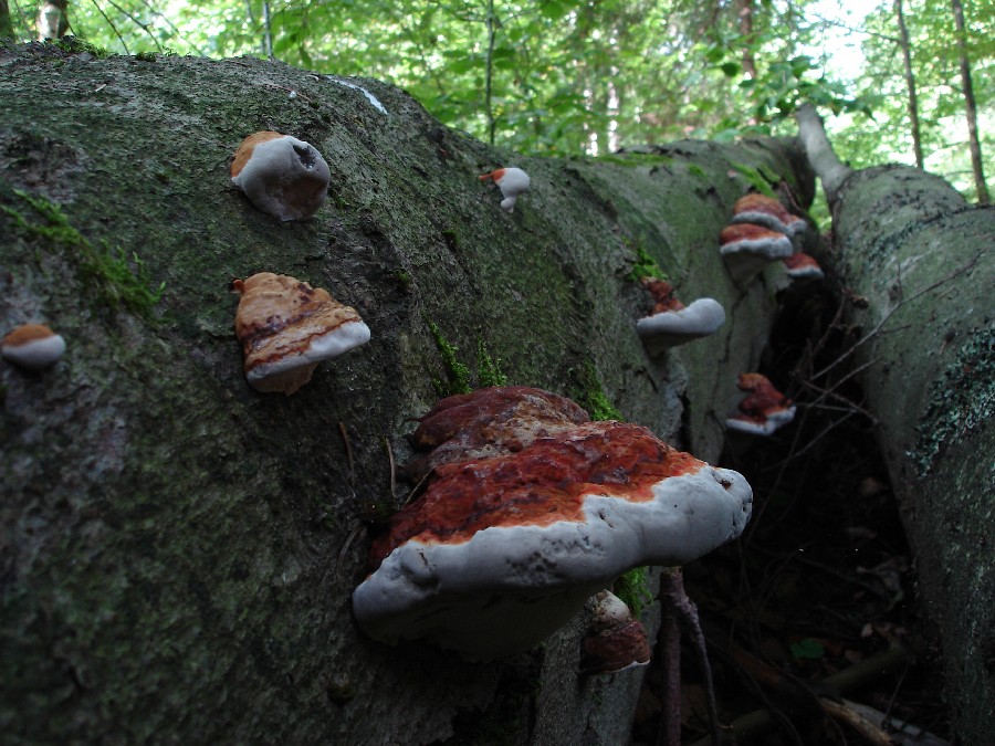 Dann noch ein größerer Pilz an einer Buche, vermutlich ein alter rotrandiger Baumschwamm da diese die Buche recht häufig bevölkert hatten: