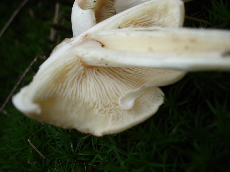 Hier noch ein weißer Pilz, unter alten Fichten, saurer Boden, geruch angenehm leicht pilzig