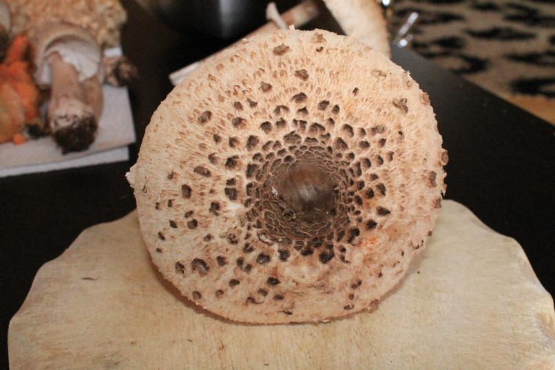 Ring ist verschiebbar, Stiel ist genattert und innen hohl und fasrig. Fleisch rötet nicht.