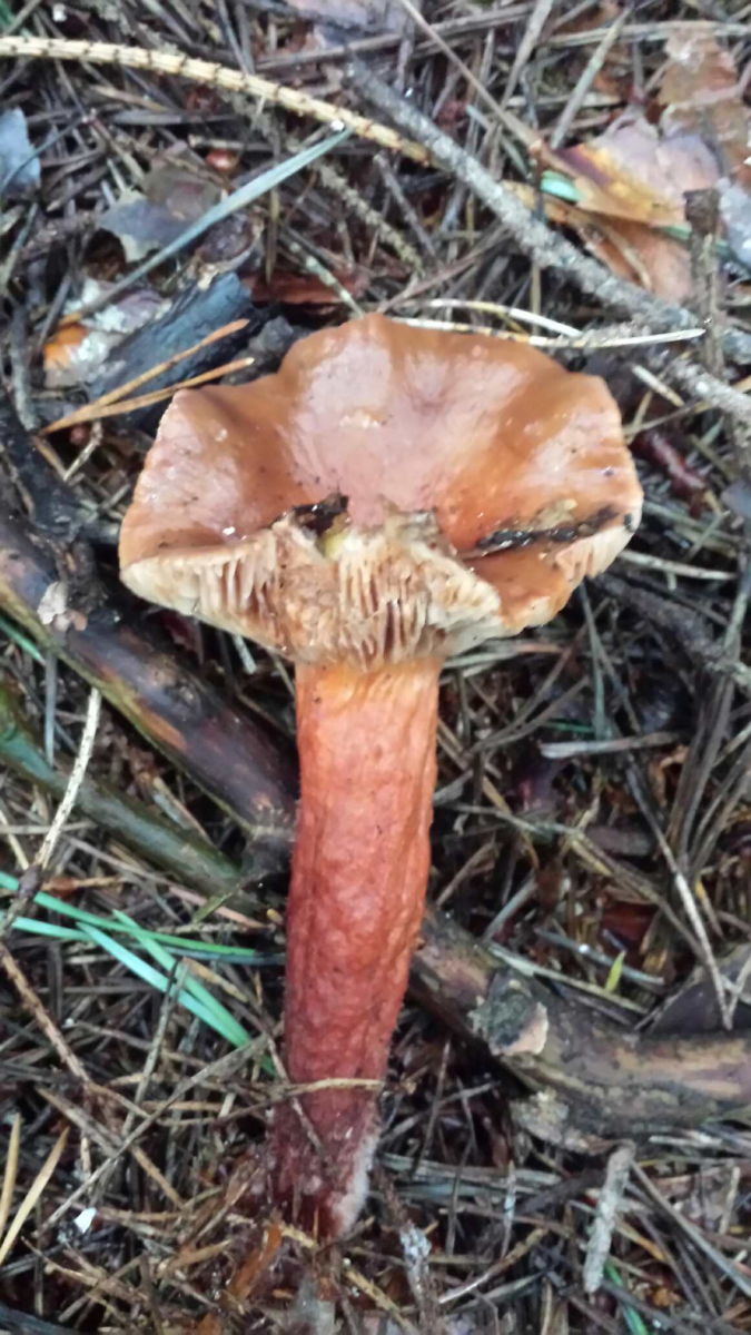 Hallo Reinhard, ohne typischen Geruch, Farben kommen richtig rüber, Rand lange eingerollt, die Lamellen, wenn jetzt noch ein kleiner Buckel in der Hutvertiefung wäre, könnte man L. rufus ins Spiel bringen, aber der hat reichlich Milch. Kein Buckel, viel Milch, somit scheidet L. rufus auch aus. Ich habe da keine weitere Idee.