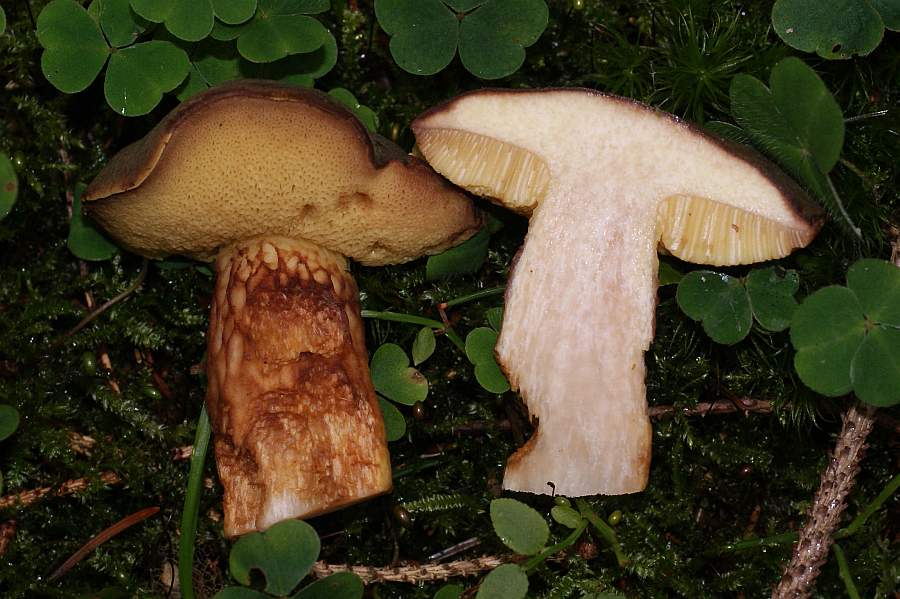 In Braunlage habe ich erstmals etliche Exemplare des Düsteren Röhrlings gefunden, zumindest halte ich ihn dafür. Es kommt nach den Büchern alles hin bis auf den Geruch. Er war nicht säuerlich-muffig (Laux) oder apothekerartig (Dähncke), sondern angenehm pilzig, leicht geranienartig wie beim Steinpilz.