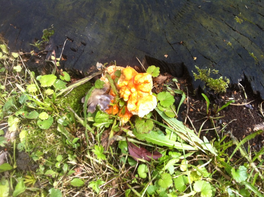 seitdem mein Freund und ich angefangen haben, haben wir immer nach dem "Chicken of the Woods" ausschau gehalten. Heute auf dem Weg zur Uni habe ich etwas genau vor unserer Tuer gefunden und konnte meinen Augen nicht trauen.