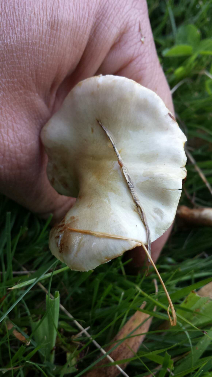 PS.: Die Lamellen sind - wie man auch auf den Bildern erkennt - ausgebuchtet angewachsen. Bestimmungsrelevant ist das hier aber nicht, selbst wenn es wieder Erwarten doch ein Pilz aus einer anderen Gattung sein sollte (was ich kaum glaube).