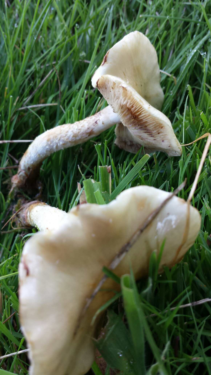 PS.: Die Lamellen sind - wie man auch auf den Bildern erkennt - ausgebuchtet angewachsen. Bestimmungsrelevant ist das hier aber nicht, selbst wenn es wieder Erwarten doch ein Pilz aus einer anderen Gattung sein sollte (was ich kaum glaube).