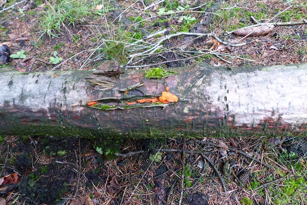 Geruch konnte ich keinen feststellen, es waren keine Poren zu sehen und es könnte eine Espe gewesen sein. Die Rinde war nicht mehr eindeutig zu erkennen. Also für mich nicht mehr. Ich hatte den Eindruck, es war Holz so halb am Absterben. Geärgert habe ich ihn nicht..............