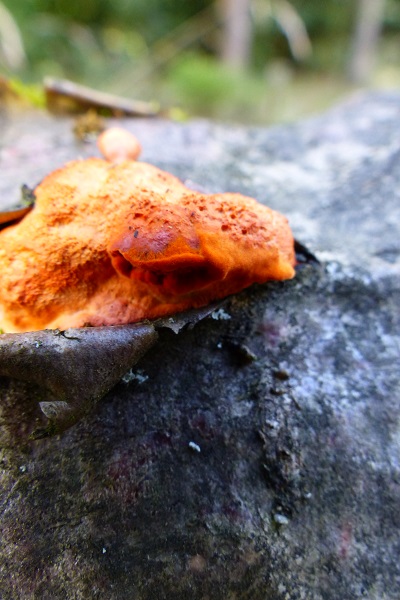 Wärs ein Rätsel hätte man mit Zinnoberrote Tramete (Pycnoporus cinnabarinus) die größten Chancen zu gewinnen.