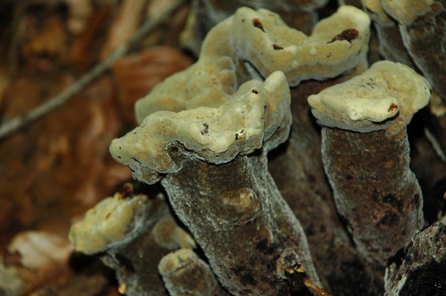 will mich auch etwas in die Diskussion einmischen. Halte das ebenso für Phaeolus schweinizii. Die Farben sind doch nicht so untypisch und komisches Fruchtkörperwachstum hab ich bei dem auch schon gesehen. Bei Phaeolus schw. gefällt mir auch immer wieder das Schillern der Poren was so an Inonotus erinnert!
