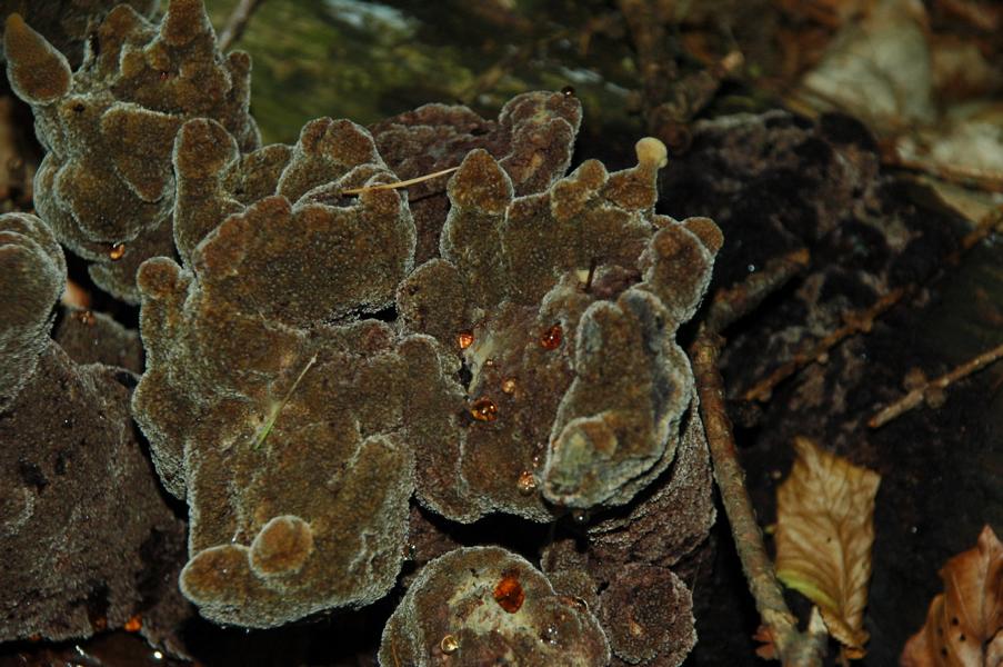 habe heute diese keulengruppe entdeckt und weiß absolut nicht, um was es sich hier handeln könnte. gesehen hab ich soetwas noch nirgends. gezeigt hat diesen pilz bisher niemand. wuchsen direkt neben diesen fichtentotholzstamm, vorwiegend buchen ringsrum. die körper waren ca 10-12cm hoch, der hut (nenn ichs jetzt mal) ca 6-7cm durchmesser, stiel ca4-5cm. dran gerochen hab ich nicht, geschmacksprobe ersparte ich mir. feste konsistenz, bei druck trat wasser aus, irgendwie wie ein schwamm........... hab bereits google befragt, aber keine antwort bekommen