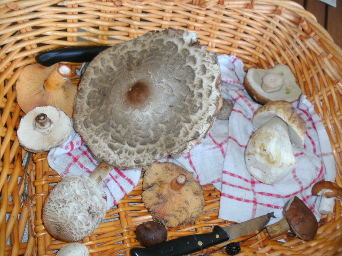 Der Schirmling oben links im Bild hier war meiner Meinung nach übrigens der Zitzenriesenschirmling. Leider auch unbrauchbar.
