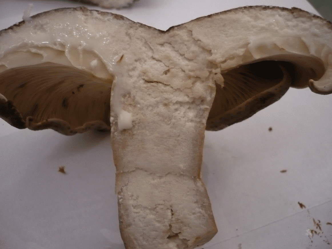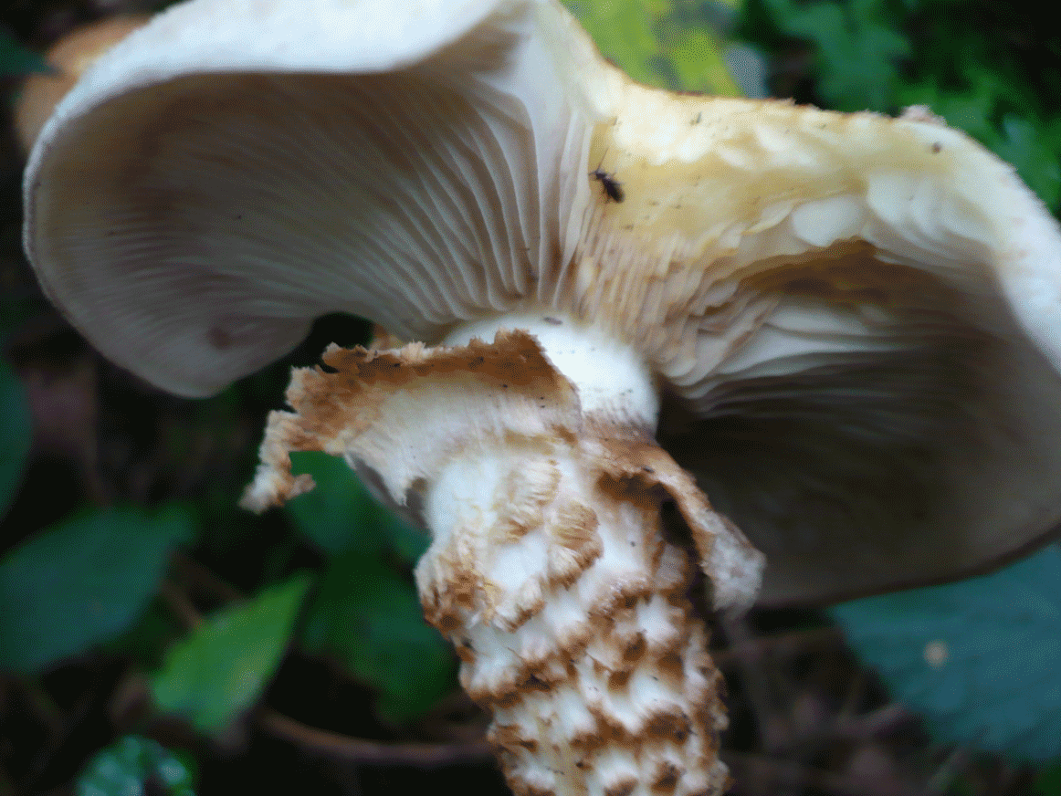 Die kleinen braunen Teilchen am Stil (weiss leider nicht wie man die nennt?!) sind weiter nach oben zu den Lamellen hin nach unten runter leicht eingerollt. Siehe Fotos! Ich hoffe ihr könnte mir sagen was ihr meint, welcher Pilz dieser sein könnte?
