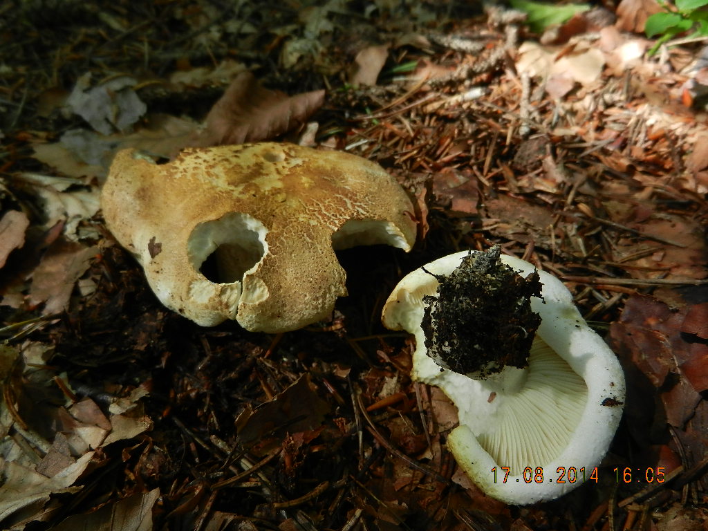 Pilz 3: mein persönliches Highlight aus diesem Urlaub; gewachsen an einem trockenen Südhang (600 m NN) mit Kiefern, begleitet von einer regelrechten Hydnellum-Flöte; nach 40 Jahren eifriger Pilzsuche ist dies die einzige Stelle, wo ich ihn je zu Gesicht bekommen habe (das allerdings schon zum zweiten Mal)