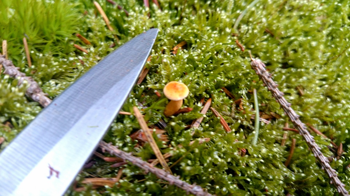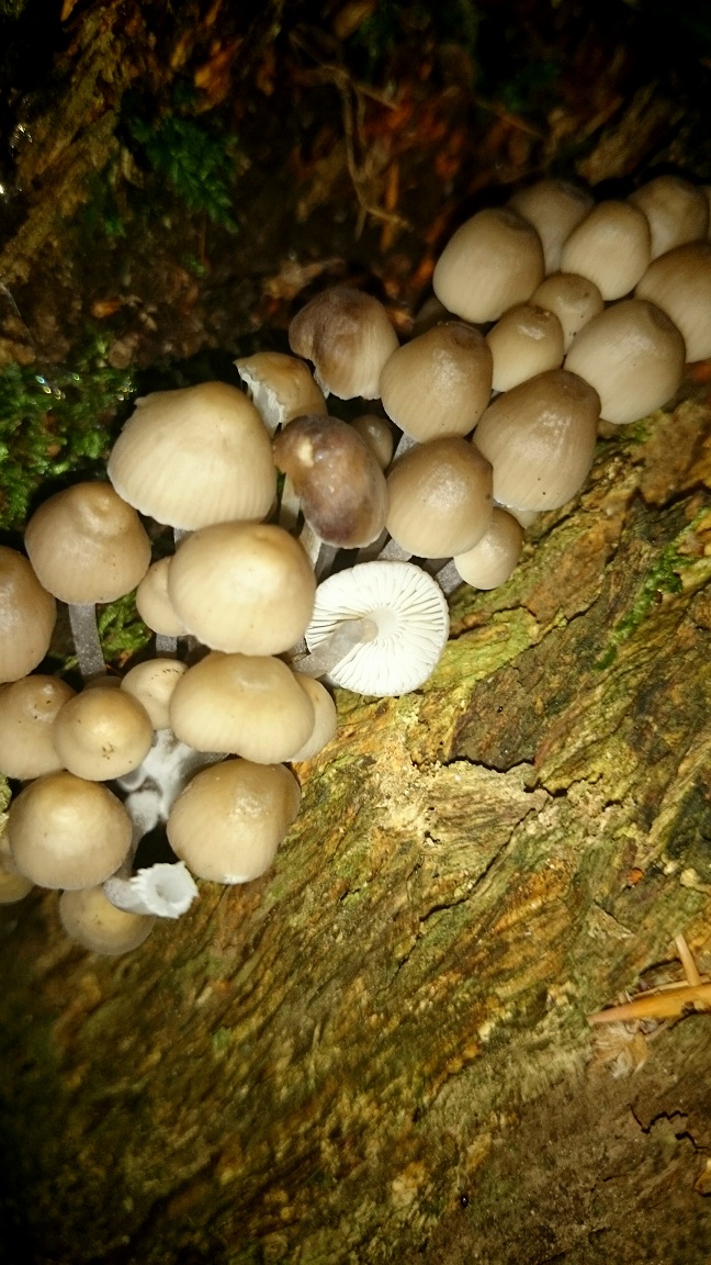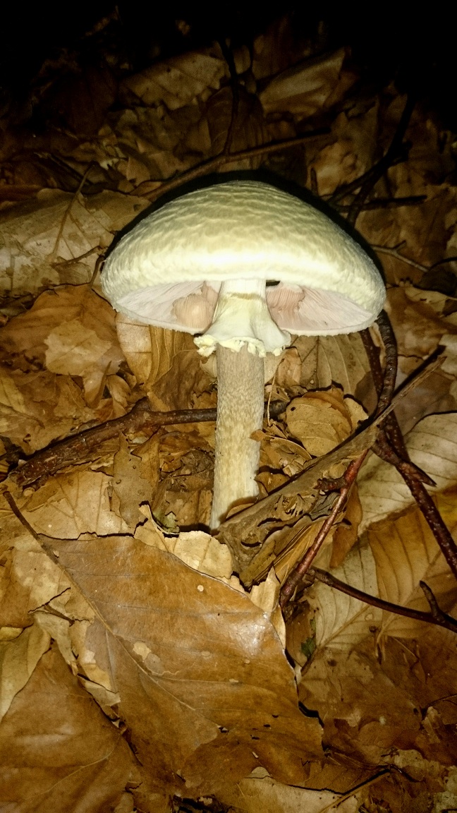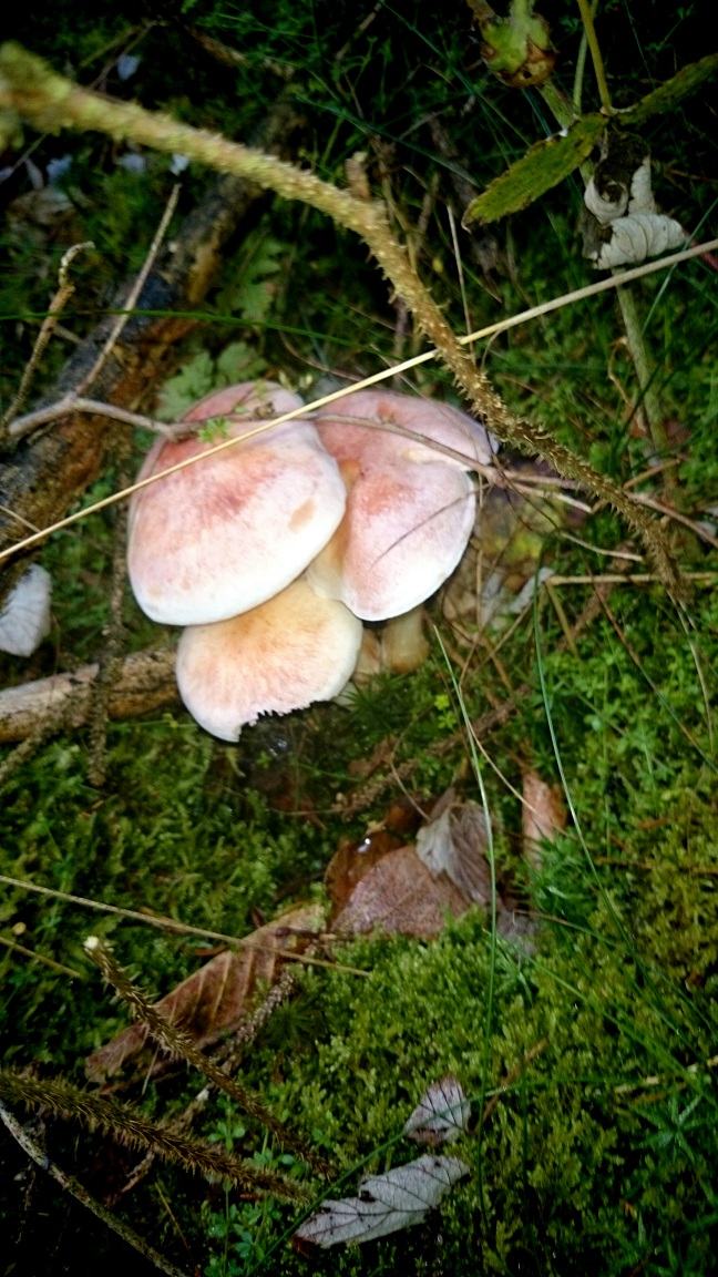 Ja und fast schon zu Hause stand im Vorgarten mitten auf ner Wiese dieses Kerlchen. Kein Baum weit und breit in Sicht. Hätte vermutet es handelt sich um einen jungen Riesenporling, aber so ohne Baum, recht merkwürdig. Fasst sich, ja ich würd sagen fast wachsartig an.