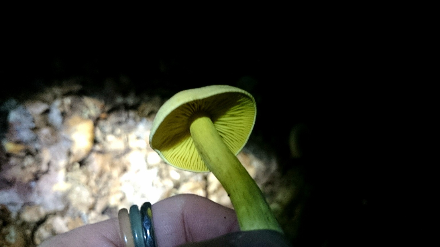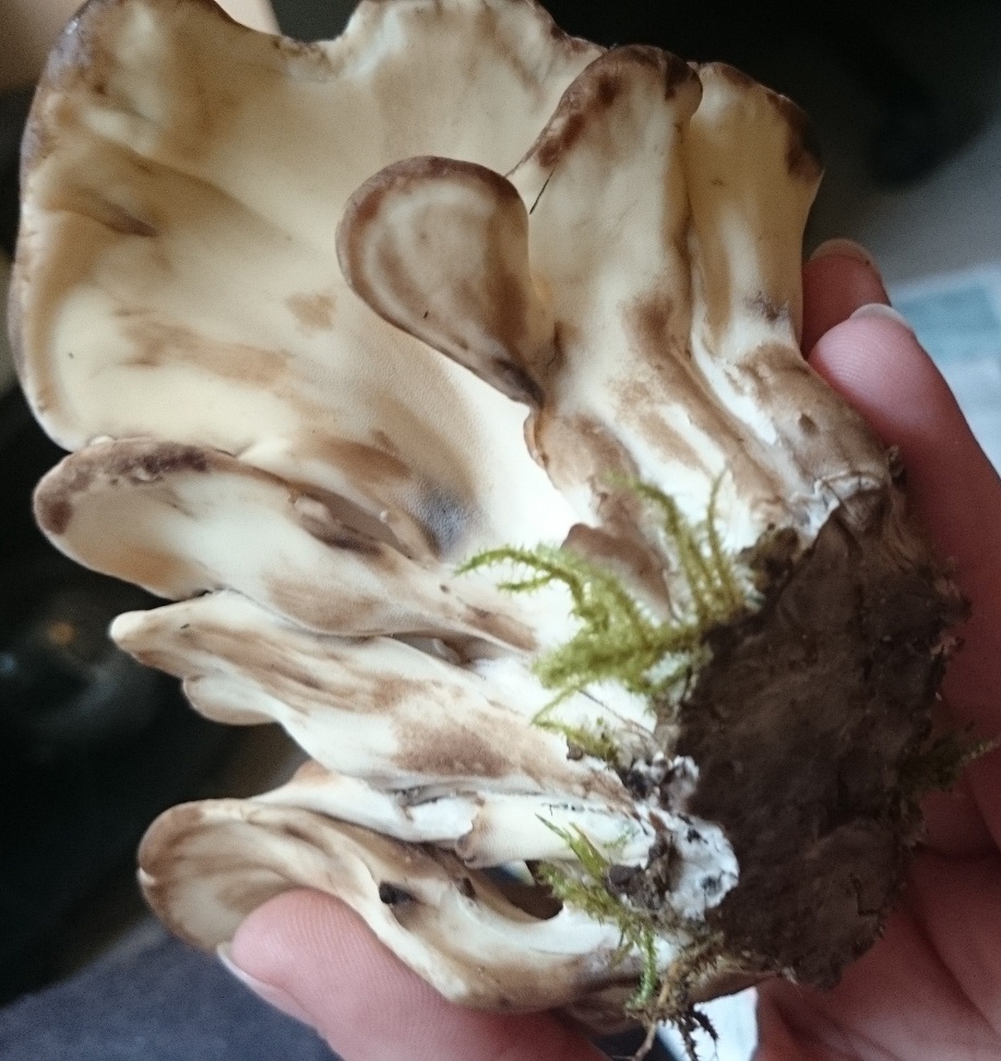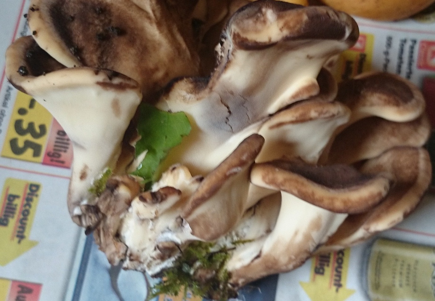 Ja und fast schon zu Hause stand im Vorgarten mitten auf ner Wiese dieses Kerlchen. Kein Baum weit und breit in Sicht. Hätte vermutet es handelt sich um einen jungen Riesenporling, aber so ohne Baum, recht merkwürdig. Fasst sich, ja ich würd sagen fast wachsartig an.