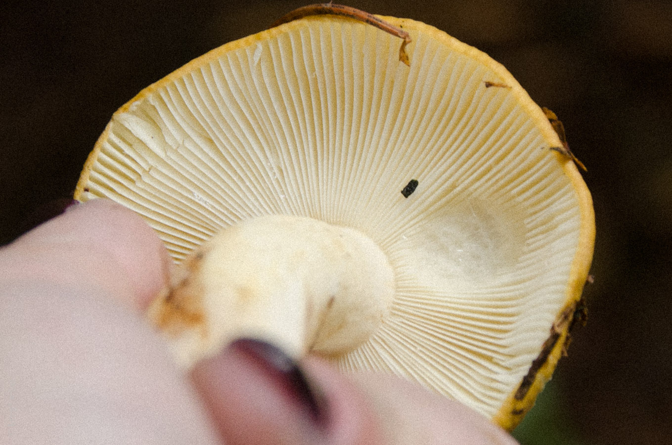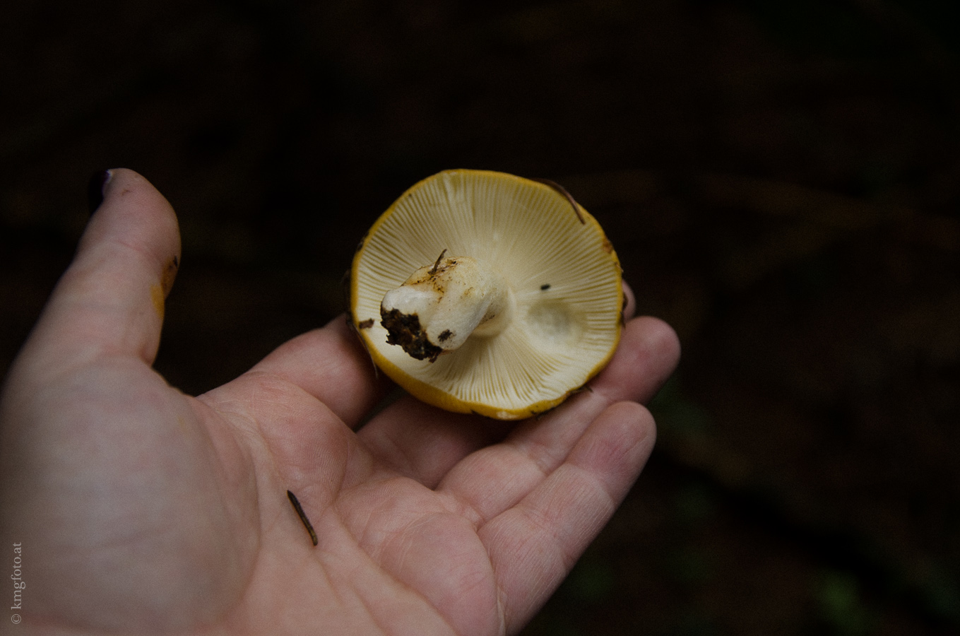... und wir glauben, dass es der Zitronen- bzw. Ockertäubling / Russula ochroleuca war.
