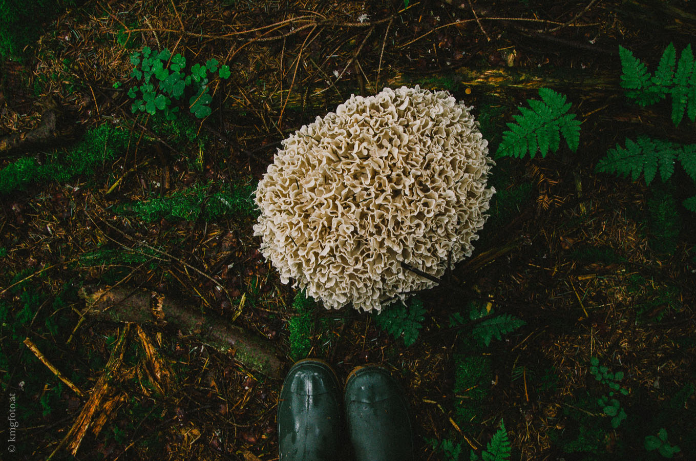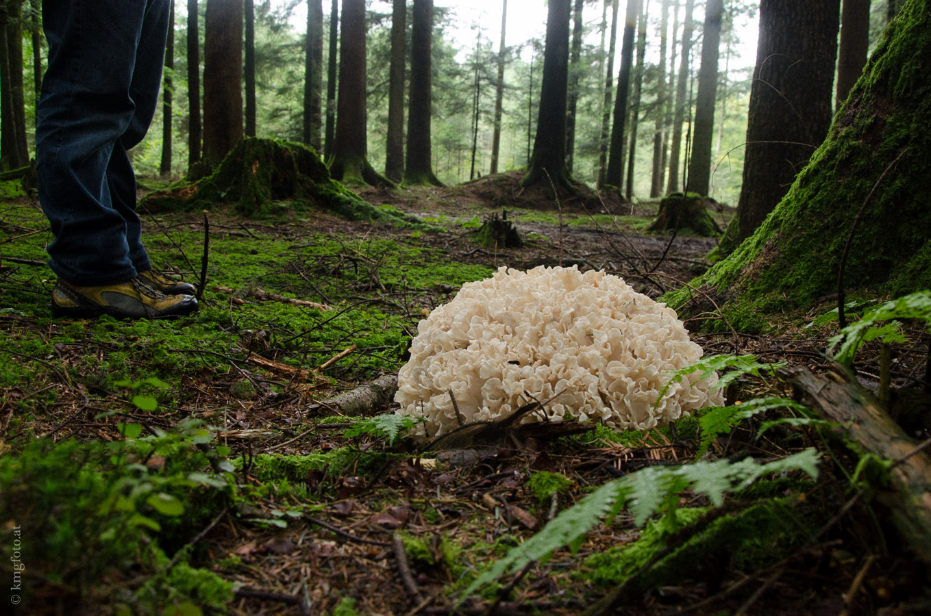 Vor Ort hätte ich am ehesten krause Glucke / Sparassis crispa gesehen, doch haben bestimmte Merkmale irgendwie nicht gepasst. Daheim habe ich mich dann im Internet umgesehen und die breitblättrige Glucke / Sparassis brevipes wäre es dann wohl gewesen. Und daher auch Enttäuschung, denn ich habe diese Glucke nicht mit heim genommen ;(;(;( aber vielleicht ist sie ja noch da :D