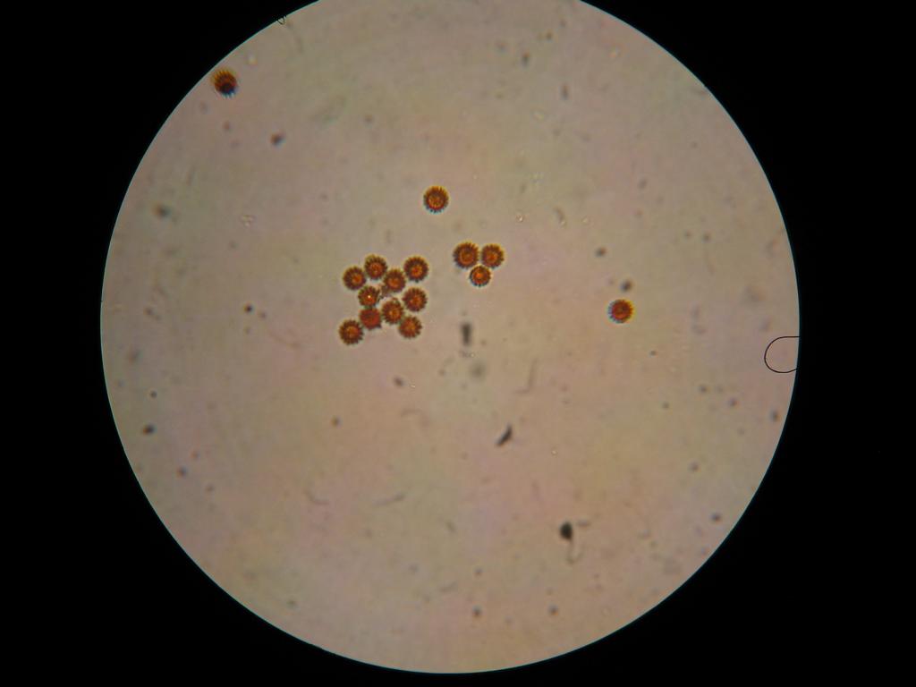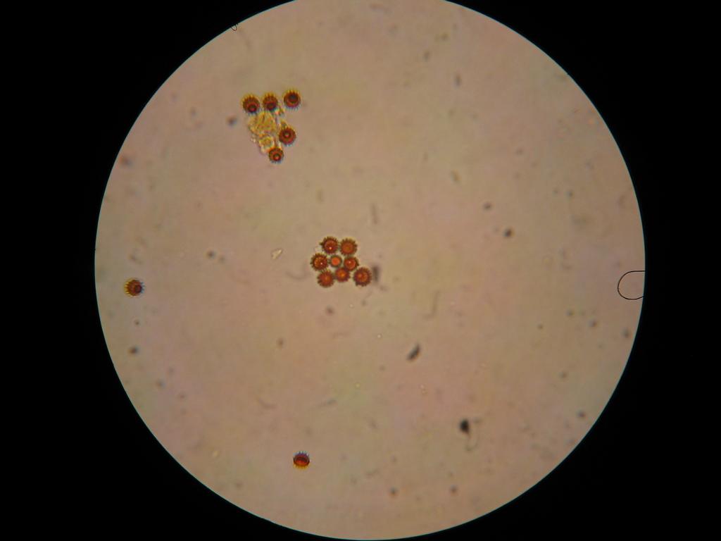 Der Beutelstäubling hat ca. 5 µ Sporen ich hab aber keine Schwänzchen gesehen, hm