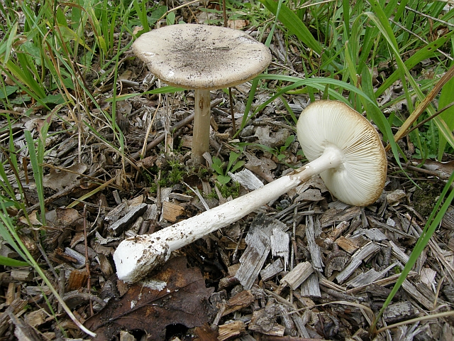 Jedenfalls habe ich diese Pilze, die übrigens auf einer Wiese wuchsen, Stielbasis tief in den Holzhäckseln versteckt, Hut längst nicht mehr grün sondern durch Sonne und Regen zu einem schmutzigen, blassen Ockergrau umgefärbt, Ring vergänglich, dann doch nicht gegessen.
