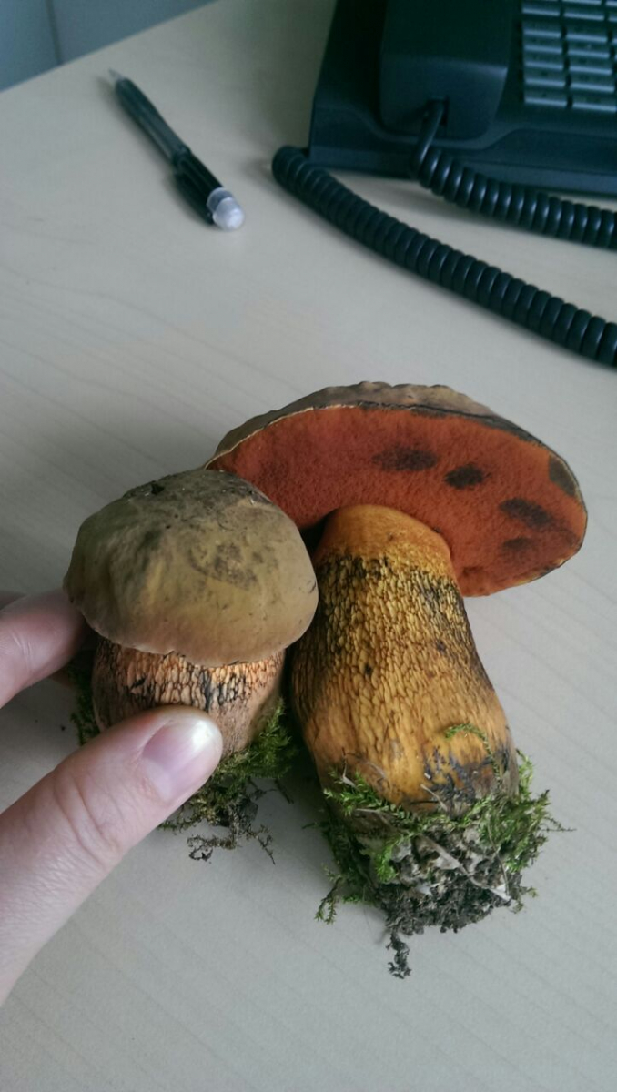 Genug der Vorrede - heute sind meiner Freundin die beiden folgenden schönen Exemplare in die Hände gefallen. Ich vermute, dass es sich um einen Netzstieligen Hexenröhrling handelt. Gerne würde ich aber sicher gehen und ein paar Experten einen Blick darauf werfen lassen. Es gibt ja zumindest ähnlich aussehende giftige Röhrlinge.
