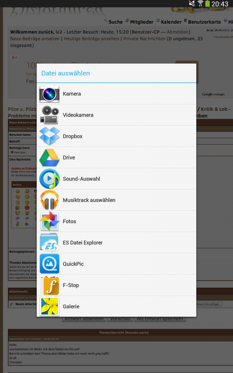wie bekomme ich Bilder mit dem Tablet ins Forum?