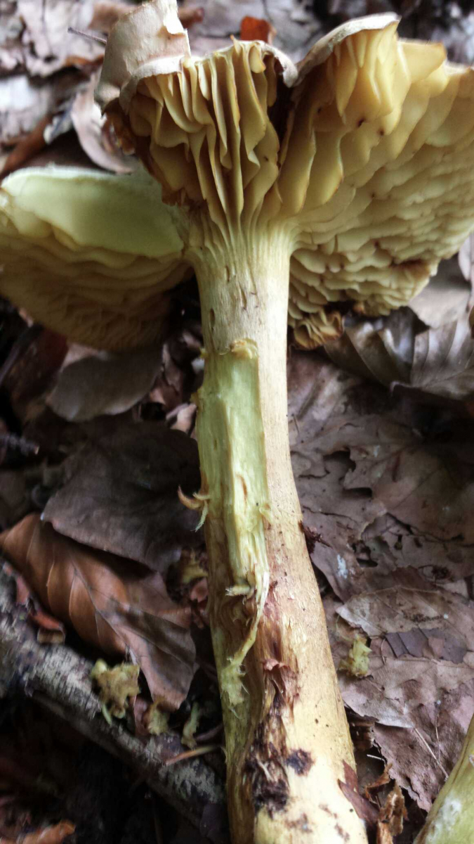 Fleisch und Stiel wurden nach ankratzen deutlich gelb. Auch der Geruch war sehr charakteristisch unangenehm und dominant ausgeprägt. Der Pilz wuchs auf dem Waldboden.