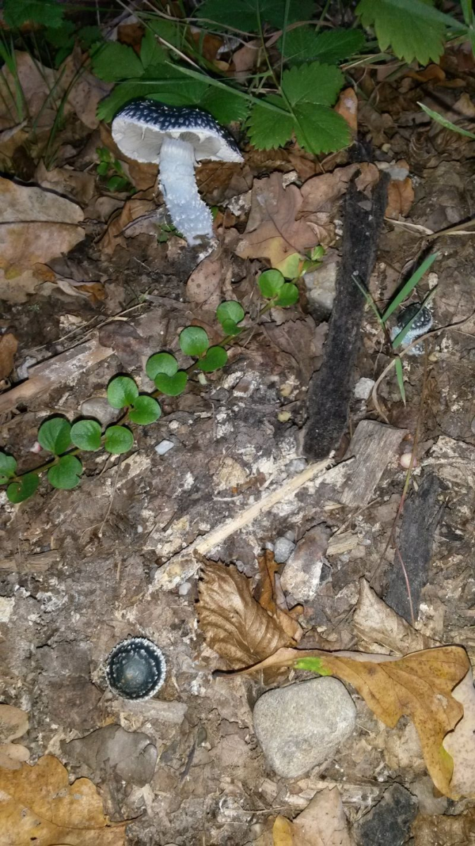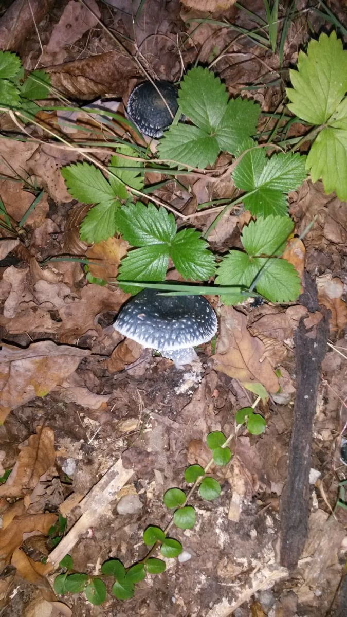 Das Zweite ist entweder der Grünspanträuschling (Stropharia aeruginosa) oder der Grünblaue Träuschling (Stropharia caerulea). Die beiden Arten sind an der Farbe des Sporenpulvers sicher zu trennen.