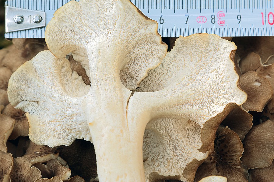 Nach einigen Blicken in meine diversen bescheidenen Unterlagen muss ich sagen, dass mir eine Verwechslungsmöglichkeit mit Grifola frondosa, dem Gemeinen Klapperschwamm insgesamt sehr unwahrscheinlich anmutet.