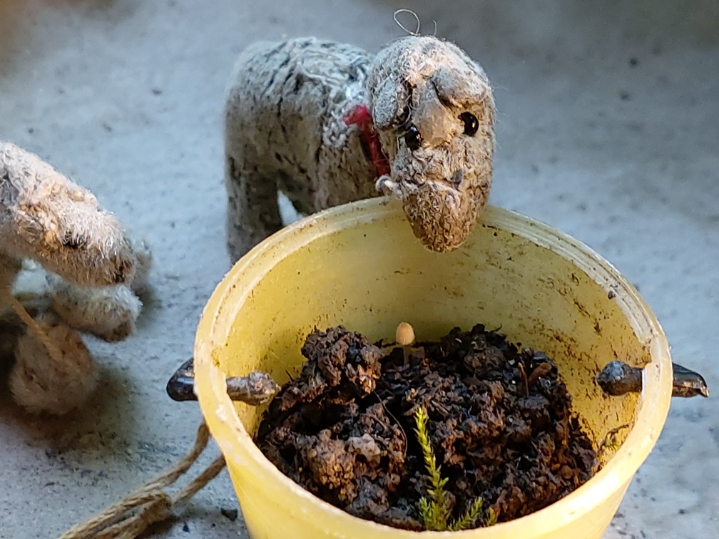 Der kleine Weihnachtsbaum ist nun Osterbaum, ggg. Er hat auch schon recht lange Maitriebe bekommen.
