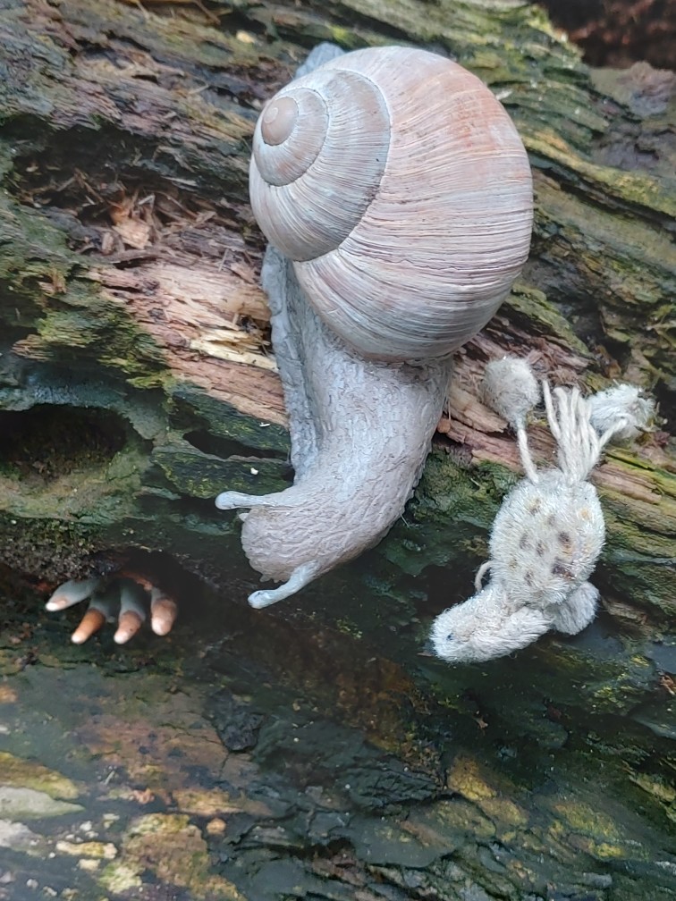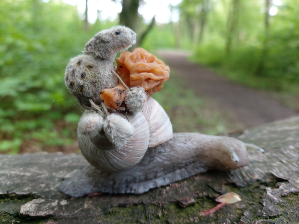 Pilze kann man am besten erforschen wenn man es vom Rücken einer Schnecke aus tut( der Körper von "Emma" ist übrigens aus Fimo)