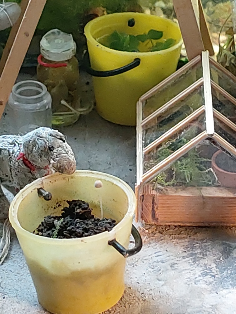 Wie ich in meinem Vorstellungsthread geschrieben hab, sammel ich keine Pilze zum Essen. Aber manchmal in einem winzigen selbstgebastelten Pilzkörb fürs Puppenhaus Minipilze,die ich dann in meinen Fotostories/Fotos einbaue und auvch zu Dekozwecken manchmal trockne. Letzes Jar fand ich einen unglaublich winzigen Fliegenpilz, nachdem es eine weile sehr trocken war, der Hut war allen Ernstes nur daumennagelgroß!!! Der war dann ein sehr dankbares Fotoobjekt. Beim Trocknen verlor er aber natürlich dann seine Farbe Da staunten meine Puppenhausbewohner: