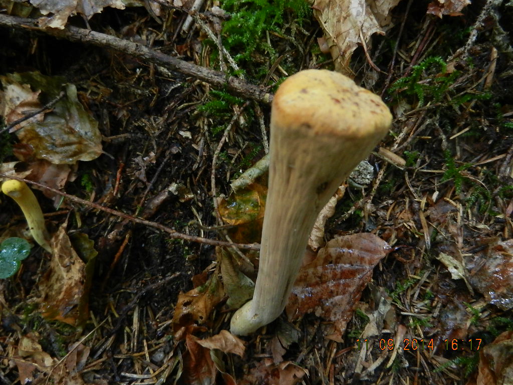 Pilz 1: Abgestutzte Keule (Clavariadelphus truncatus); durch den süßen Geschmack und rote KOH-Reaktion unverkennbar; für mich erst der zweite Fund in 40 Jahren Pilzesuchen