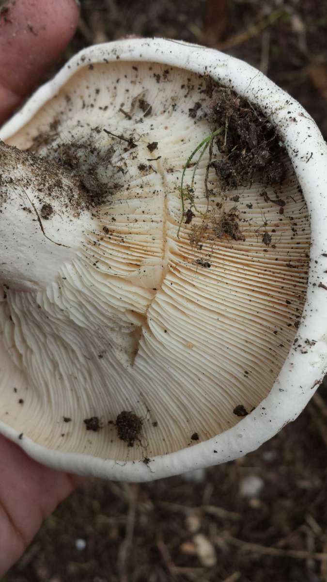 Die Lamellen waren nicht splitternd. Würde ja eigentlich gegen den Täubling sprechen. Wobei es ja deutlich splitternde Lamellen bei Täublingen gibt und weniger deutlich splitternde. Wo ein potentieller Weisstäubling einzugruppieren wäre weiss ich nicht.