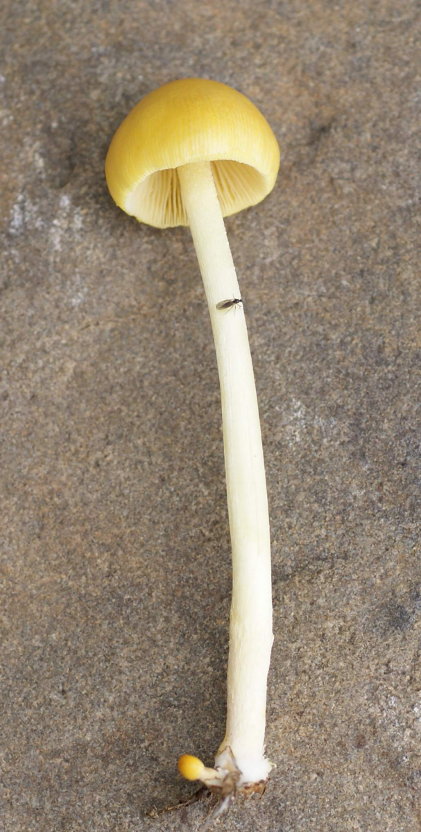 Bei dem Gesamtaussehen habe ich weisses Sporenpulver unterstellt und bin bei der Bestimmungsübung beim Orangeroten Helmling angekommen. Aber: Alle Abbildung des Orangeroten Helmlings sind doch intensiver orange als dieser "Gelbling". Ich betrachte das als Lernübung. Was sagen die Pilzkenner dazu?