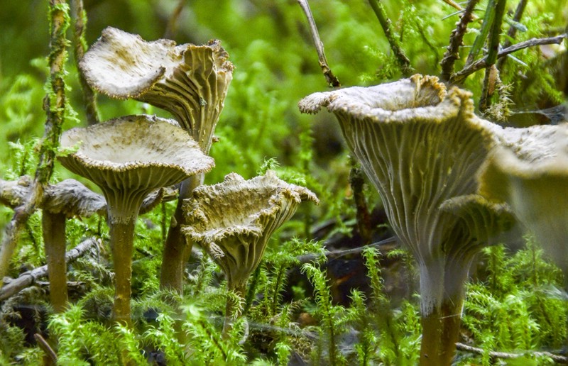 Platz 13 (Bild 11) halte ich für überständige Trompetenpfifferlinge...