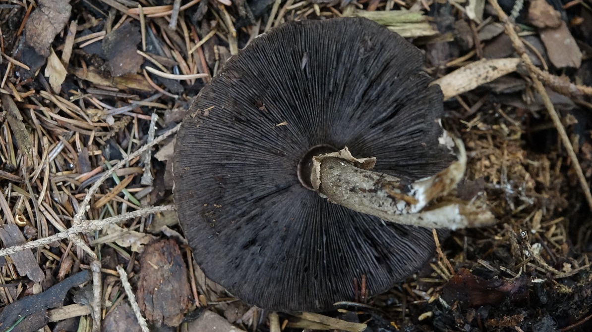 Das sieht mir nach einem sehr alten Champignon (Agaricus) aus, wahrscheinlich aus der Wald-Champignon-Ecke (A. silvaticus und Verwandte).